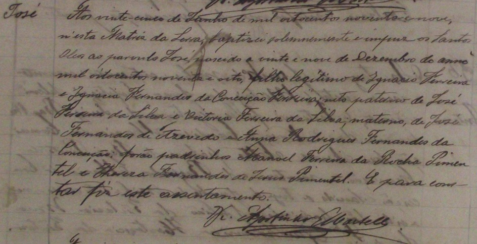 - Jose, nascido no dia 29/12/1898, batizado no dia 25/06/1899, na Matriz da Serra-ES