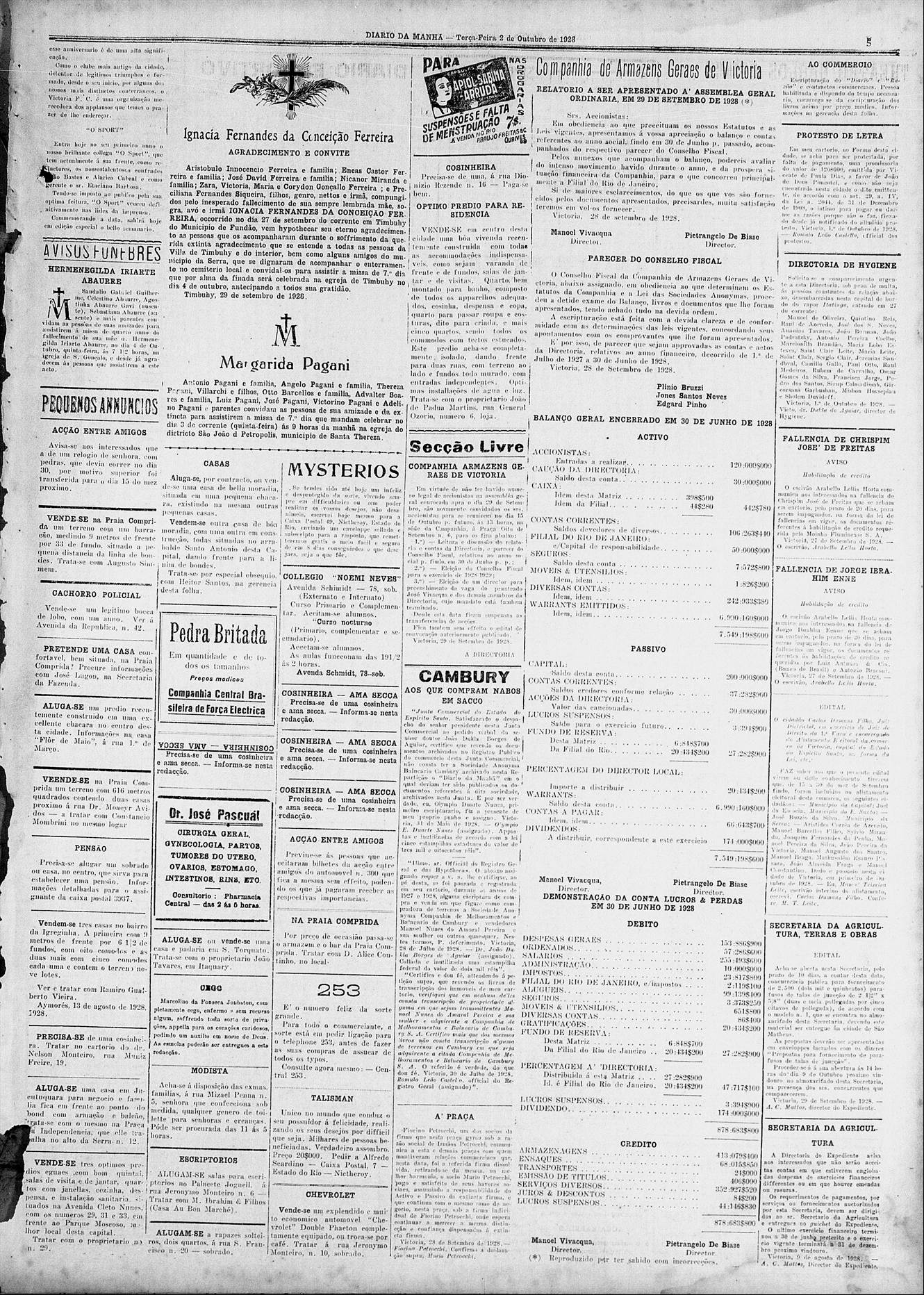 Jornal de 1928 - Falecimento de Ignacia Fernandes Conceição Ferreira