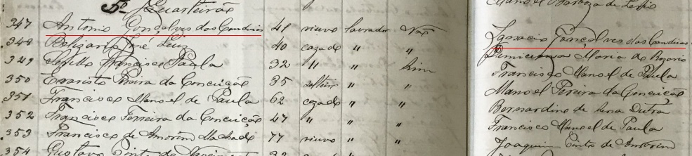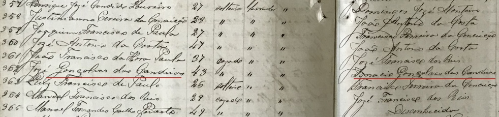 - Antonio Gonçalves das Candeias c.c. Celindra Maria de Jesus, filha de Jose Joaquim de Jesus e Joanna Maria Ferreira