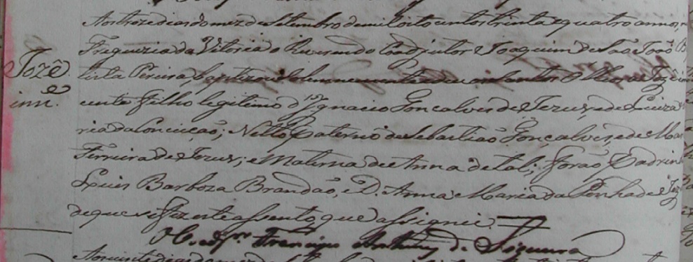 - Jose, batizado no dia 13/09/1834, na Matriz de Vitoria-ES