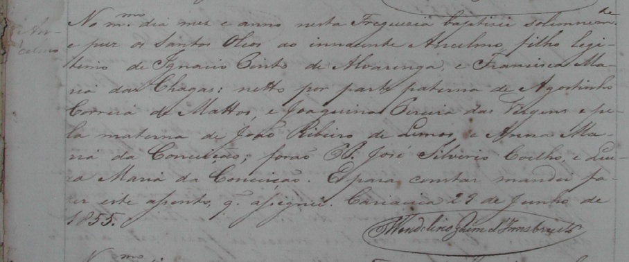 - Ancelmo, batizado no dia 29/06/1855, na Freguezia de Cariacica-ES