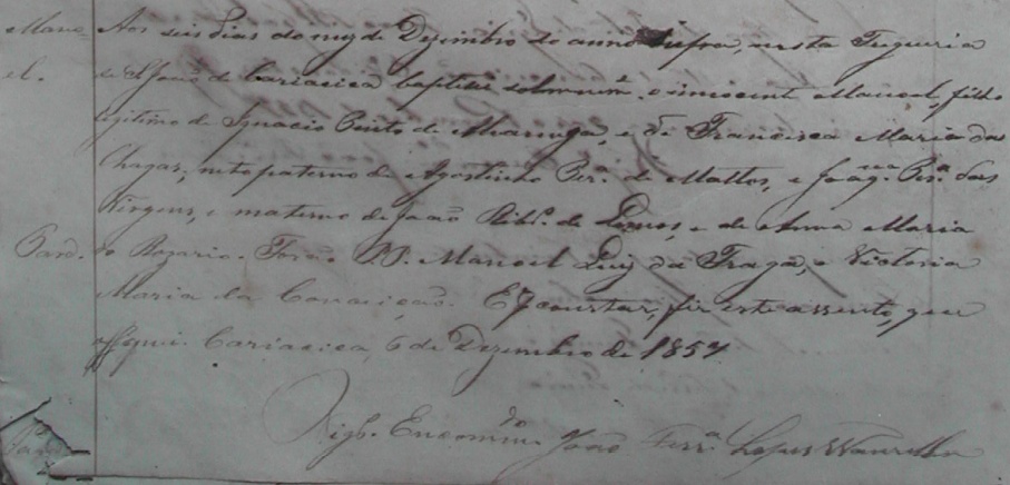 - Manoel, batizado no dia 06/12/1857, na Freguezia de Cariacica-ES