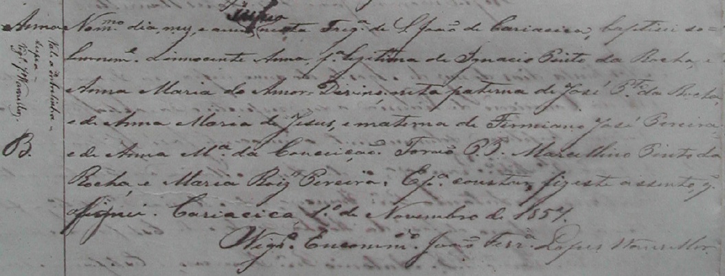 Padrinhos: Marcellino Pinto da Rocha e Maria Rodrigues Pereira