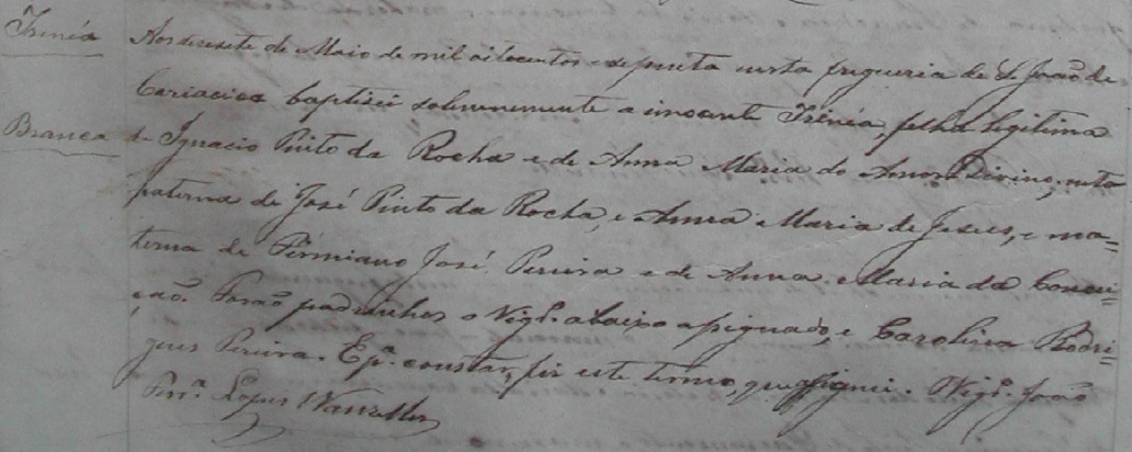 - Irenia, batizada no dia 17/05/1860, na Freguezia de São João de Cariacica-ES