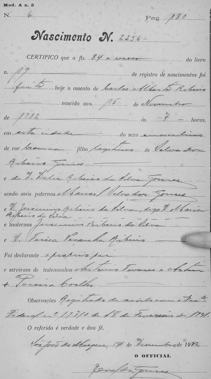 Avós:Manoel Ribeiro da Silva e Maria Ribeiro de Jesus