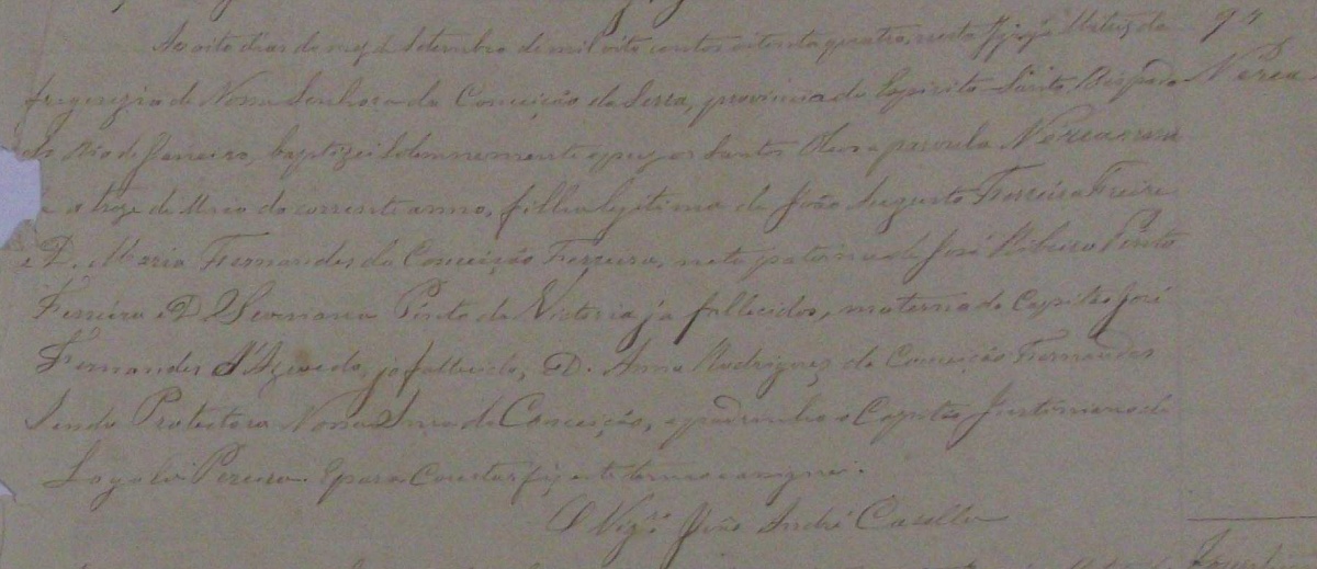 - Nerea, nascida no dia 13/05/1884, batizada no dia 08/09/1884, na Matriz da serra-ES