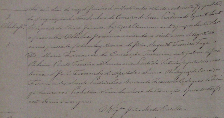 - Othilia Joanna, nascida no dia 21/08/1886, batizada no dia 06/01/1887, na Matriz da Serra-ES