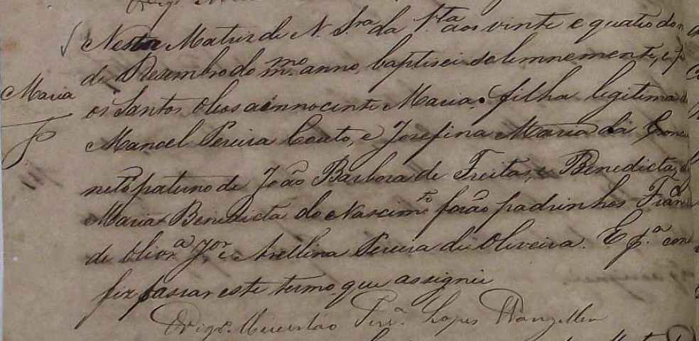 - Maria, batizada no dia 24/12/1853, na Matriz de Nossa Senhora da Vitoria-ES
