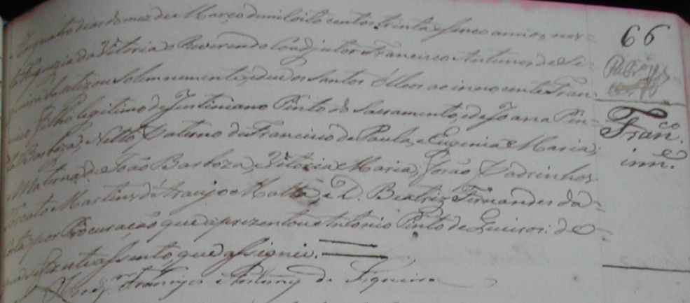 - Francisco, batizado no dia 04/03/1835, na Matriz de Vitoria-ES