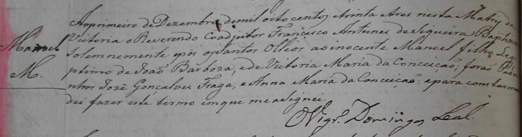 - Manoel (M), batizado no dia 01/12/1833, na Matriz de Vitoria-ES
