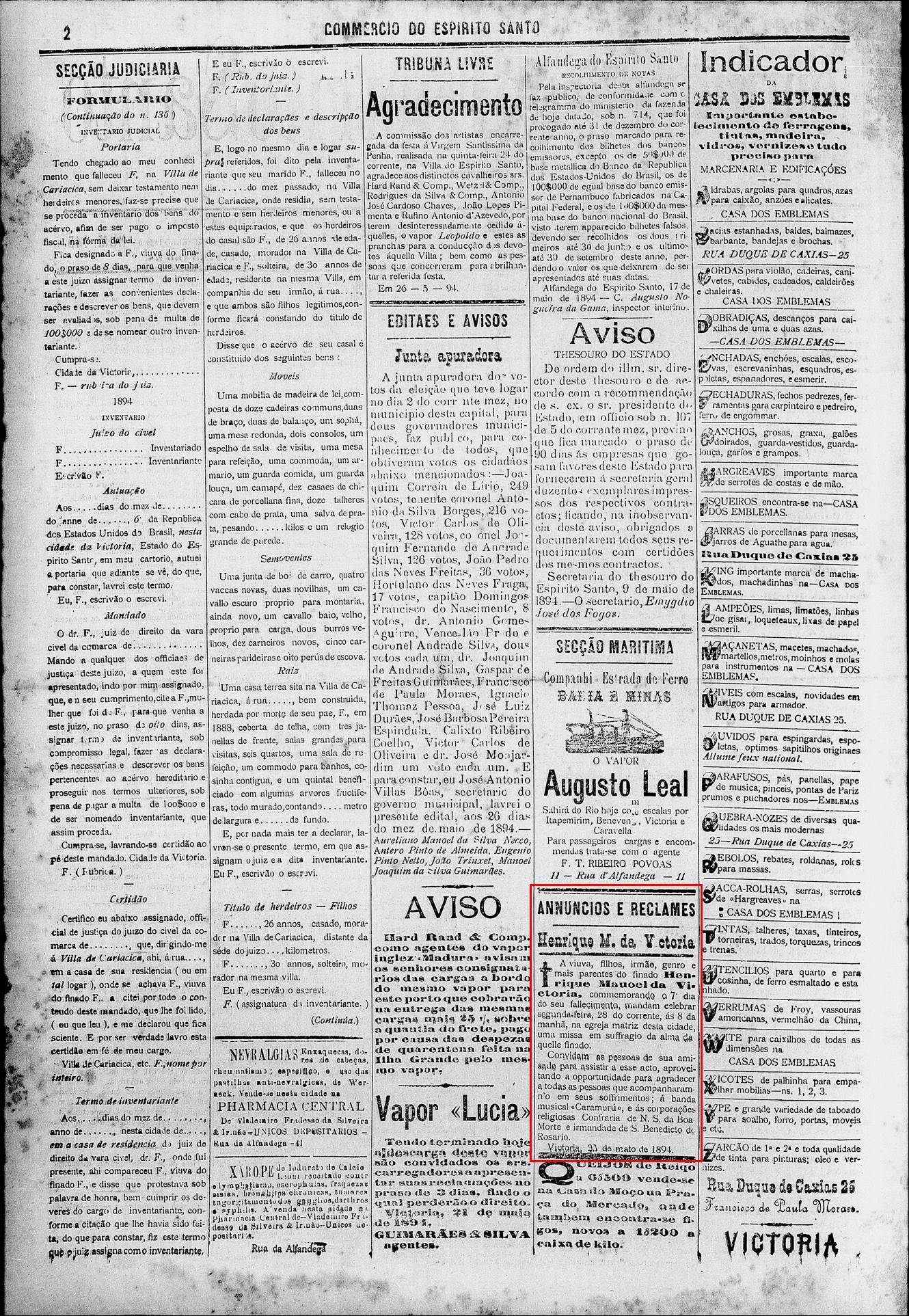 (Henrique, falecido em 1894, conforme jornal abaixo)