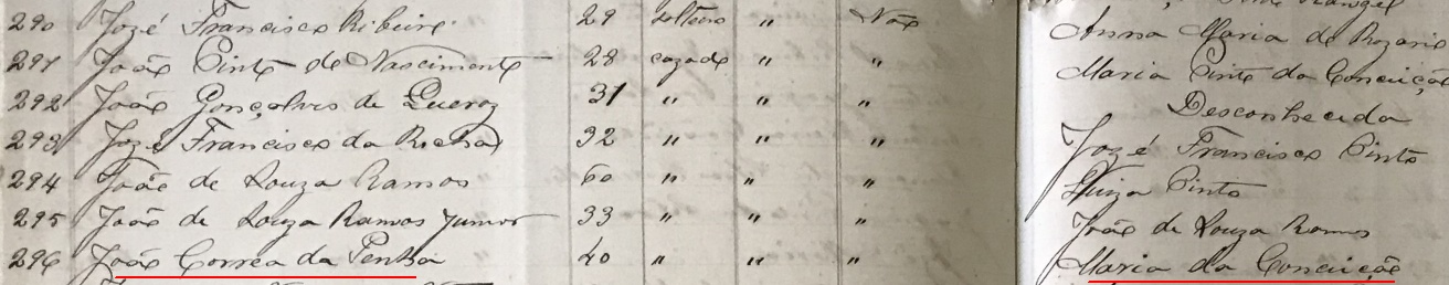 - João Correia da Penha c.c. Luiza Fernandes Penha, filha de Francisco Fernandes de Miranda e Albertina Maria do Sacramento