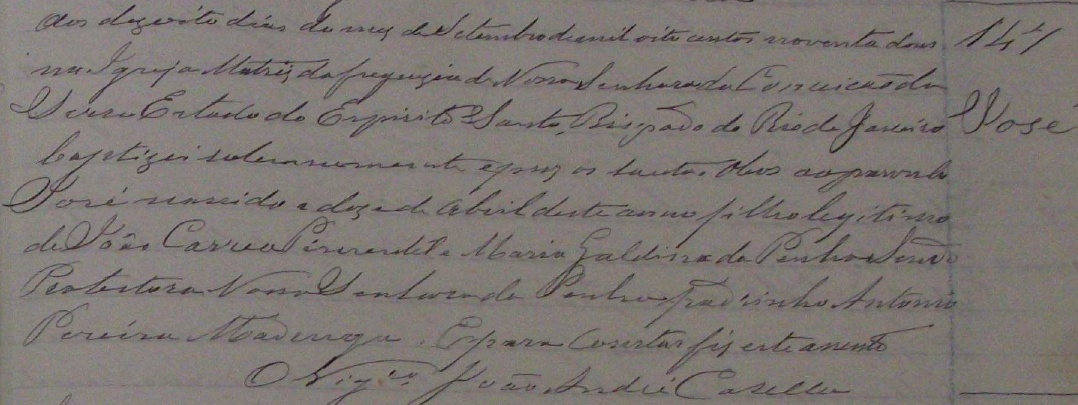 Testemunhas: Miguel Antunes do Nascimento e Vicente Pereira de Jesus