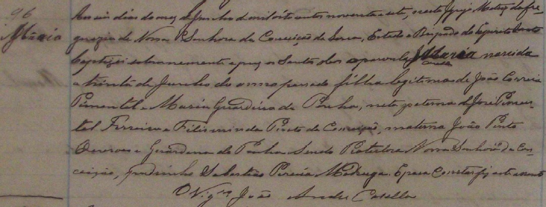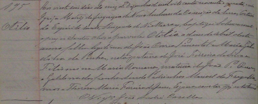 Casaram-se no dia 13/06/1891, pelas 8 horas da manhã, na Igreja Matriz da Freguezia de Nossa Senhora da Conceição da Serra-ES
