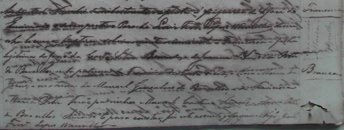 Padrinhos: Manoel do Nascimento Branco e Joanna Monteira de Lyrio