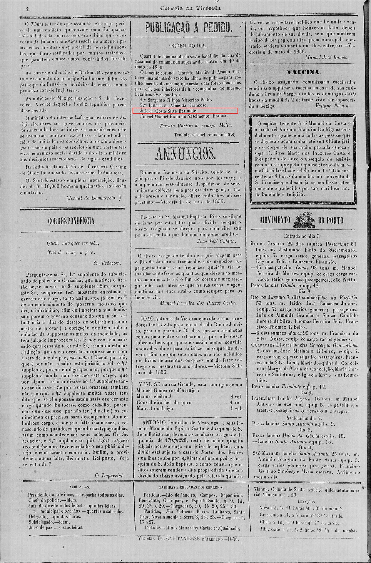- João, nascido no dia 19/05/1885, batizado no dia 29/08/1886, na Matriz de Vitoria-ES
