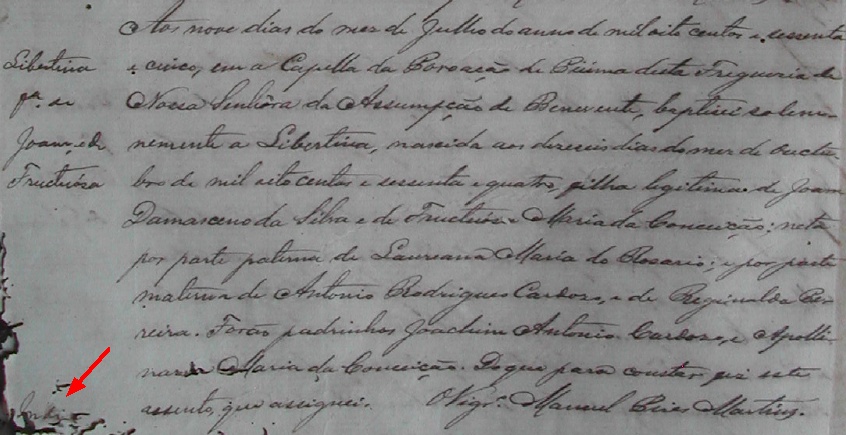 Padrinhos: Joaquin Antonio Cardozo e Apollinaria Maria da Conceição