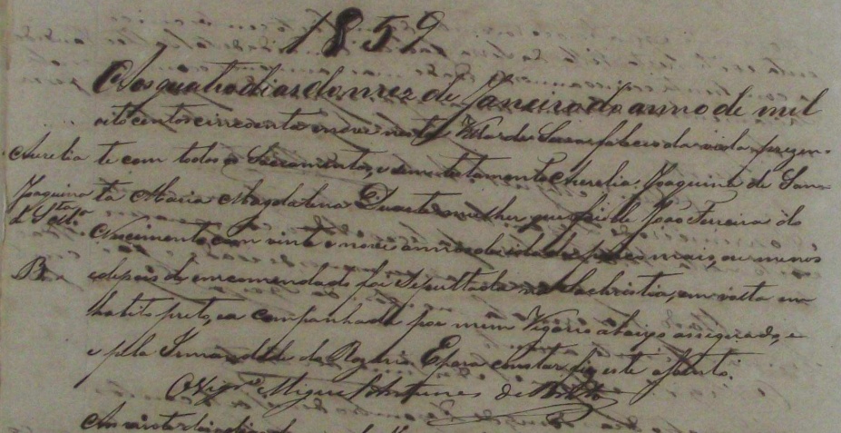 Aurelia Joaquina de Santa Maria Magdalena Duarte faleceu no dia 04/01/1859, com 29 anos de idade, na Vila da Serra-ES,