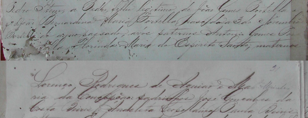 - Manoel Gomes Portella c.c. Umbelina Maria da Conceição Portella, filha de João Lourenço de Aguiar e Josephina Maria da Conceição