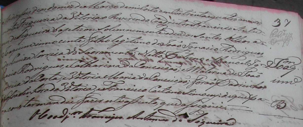 Joaquim, batizado no dia 16/03/1834, na Freguesuia de Vitoria-ES
