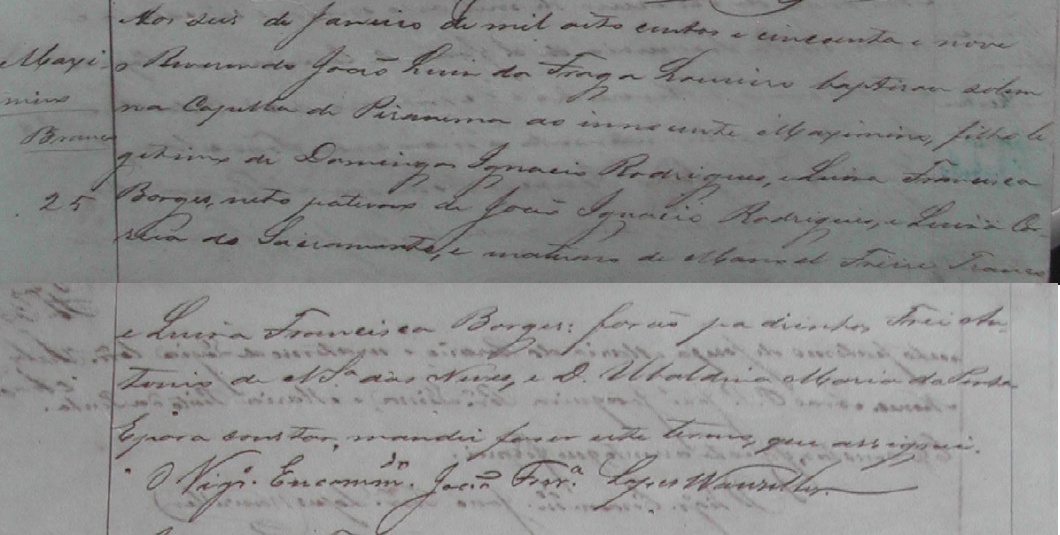 Domingos Ignacio Rodrigues c.c. Luiza Francisca Borges, filha de (Manoel Ferreira Franco?) Manoel Freire Franco e Luiza Francisca Borges