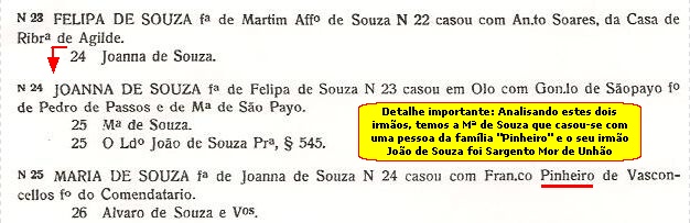 Ver abaixo, hipótese de "genealogia de costado" destes "Pinheiro de Souza"