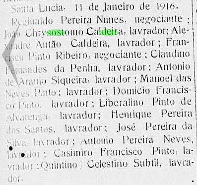 - (Certamente) João Chrysostomo Caldeira, em 1916 era lavrador em Santa Lucia, Municipio de Santa Leopoldina
