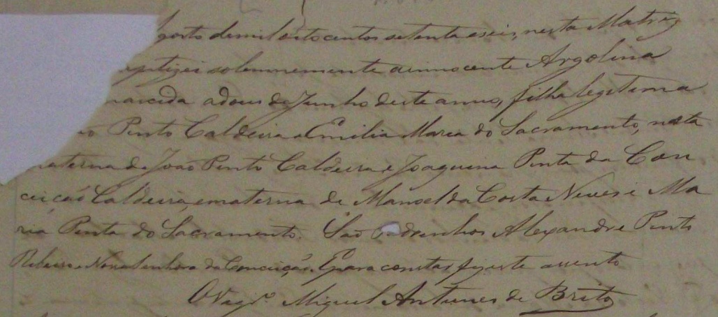 - Argolina, nascida no dia 02/06/1876, batizada no dia 06/08/1876, na Matriz da Serra-ES