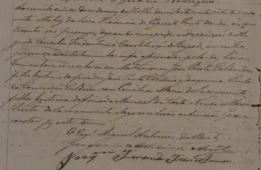Casaram-se no dia 18/09/1892, pelas 4 horas da tarde, na Igreja matriz da Freguezia de Nossa Senhora da Conceição da Serra-ES