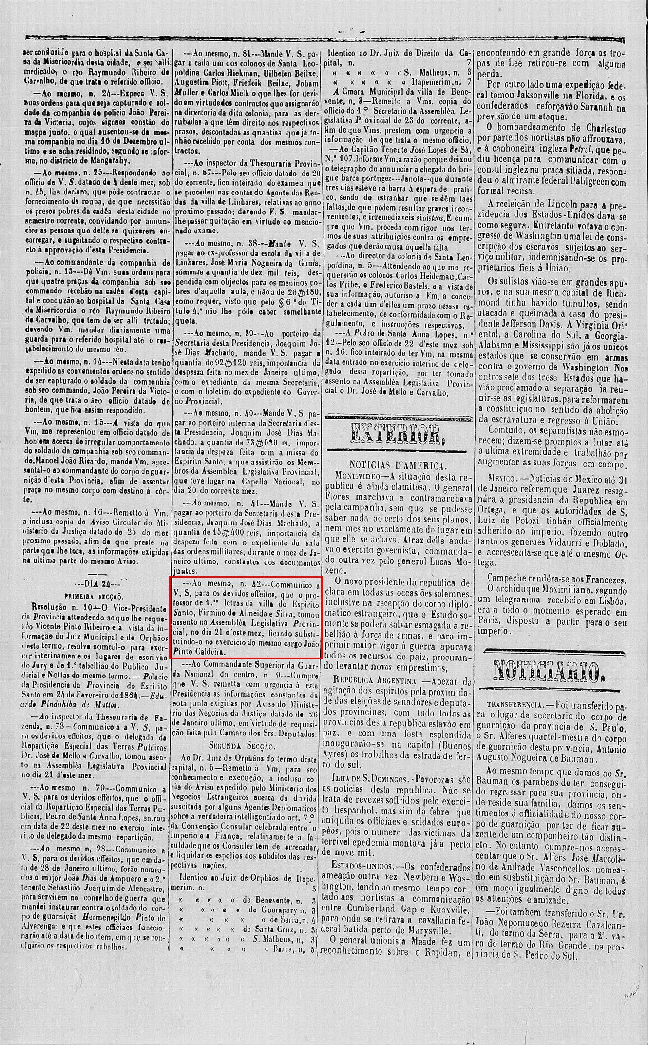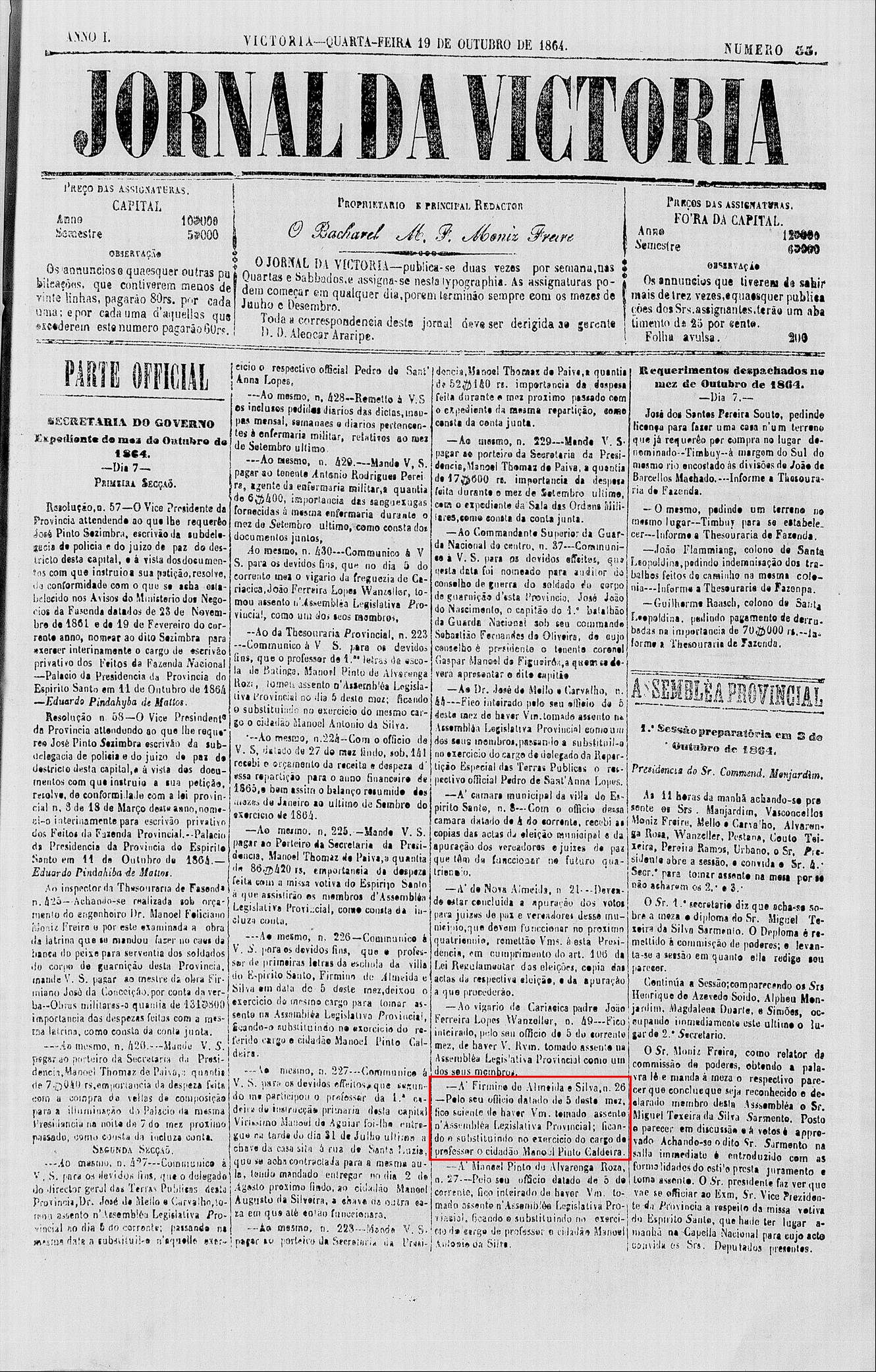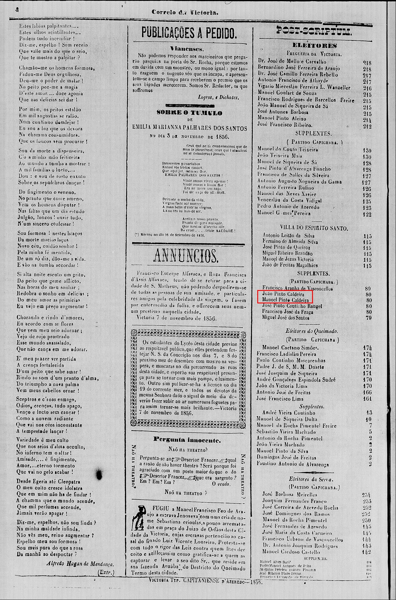 João Pinto Caldeira ou Manoel Pinto Caldeira, em 1864 Professores em Vilha Velha-ES, conforme jornais abaixo