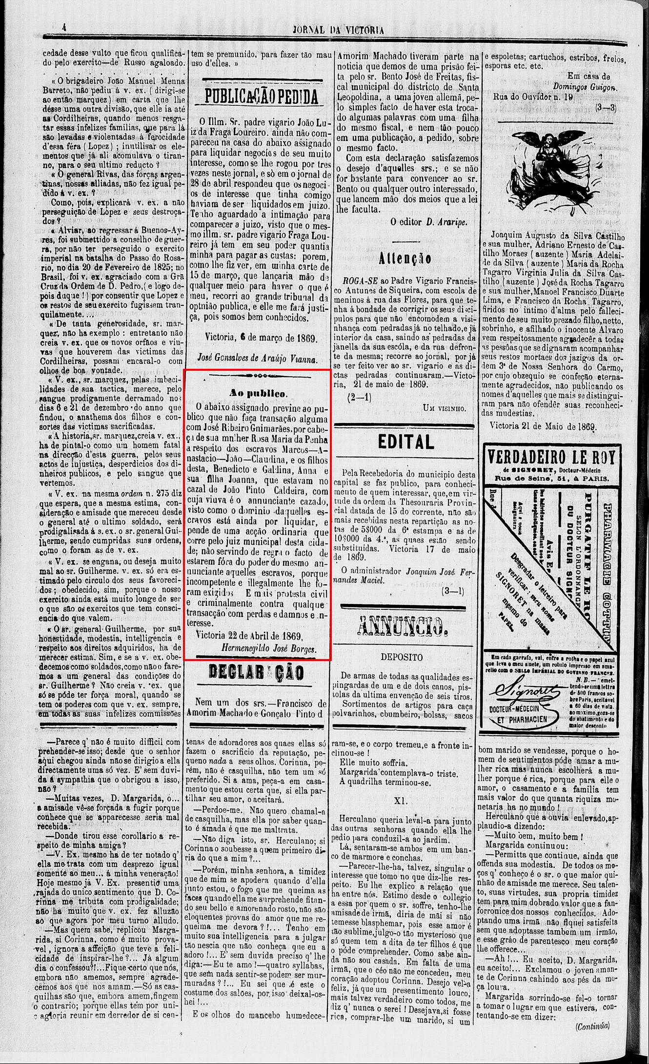conforme jornal de 1869 abaixo