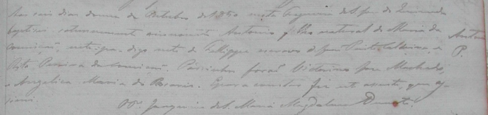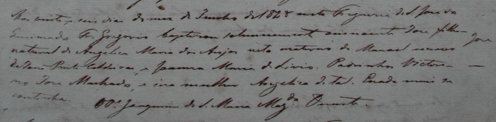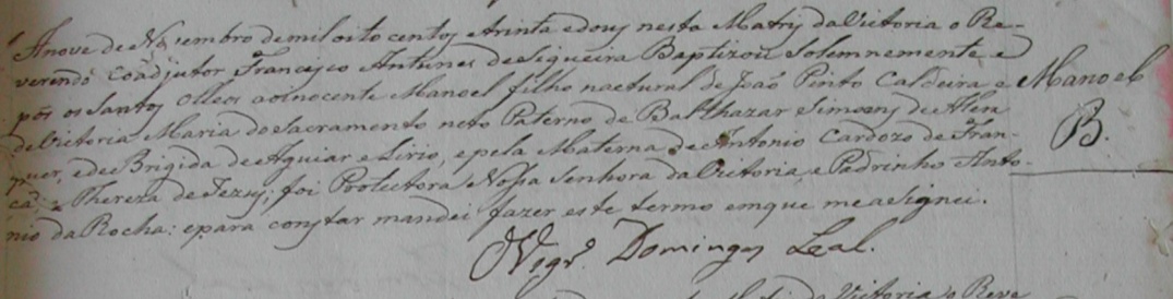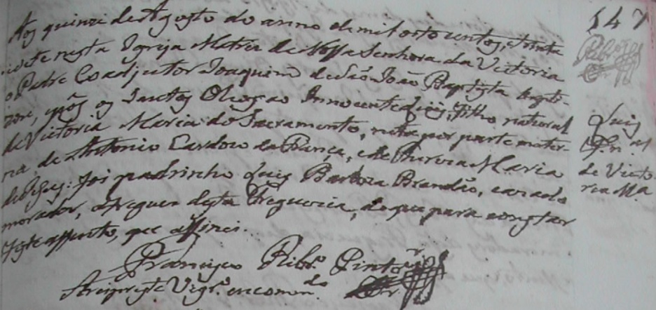 Ele não aparece no batismo do neto Fellymino abaixo e os outros filhos de Victoria Maria do Sacramento são identificados como filhos naturais
