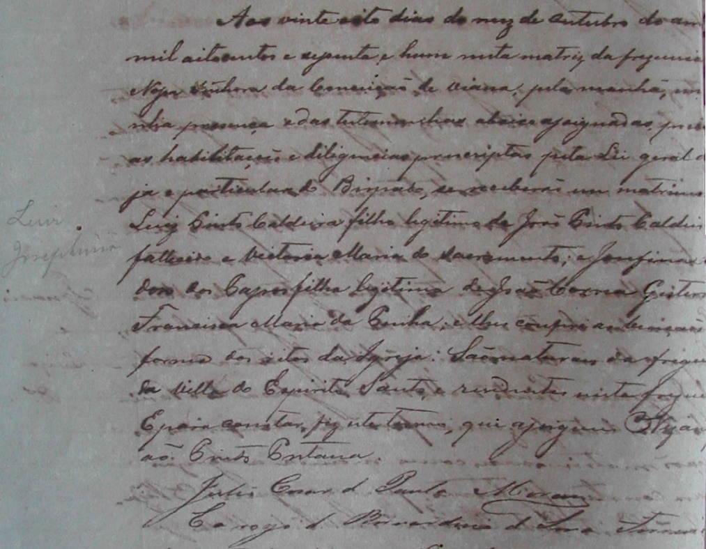 Já falecido em 28/10/1861, data do casamento do filho Luiz Pinto Caldeira, abaixo.