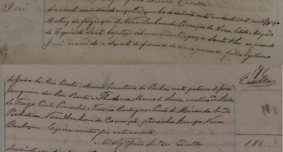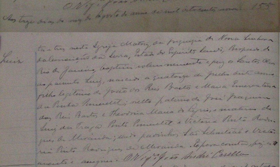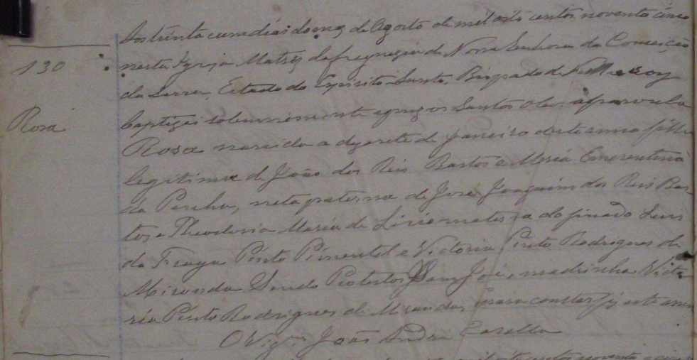 Casaram-se no dia 15/10/1892, pelas 5 horas da tarde, na Igreja Matriz da Freguezia de Nossa Senhora da Conceição da Serra-ES