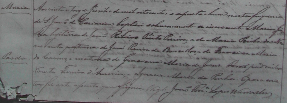 - Maria, batizada no dia 23/06/1861, na Freguezia de São João de Cariacica-ES