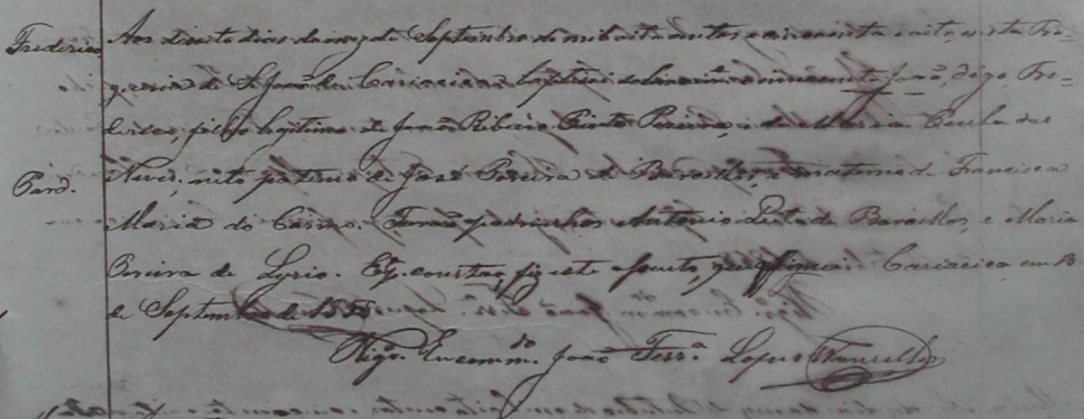 no dia 18/09/1858, na Freguezia de São João de Cariacica-ES