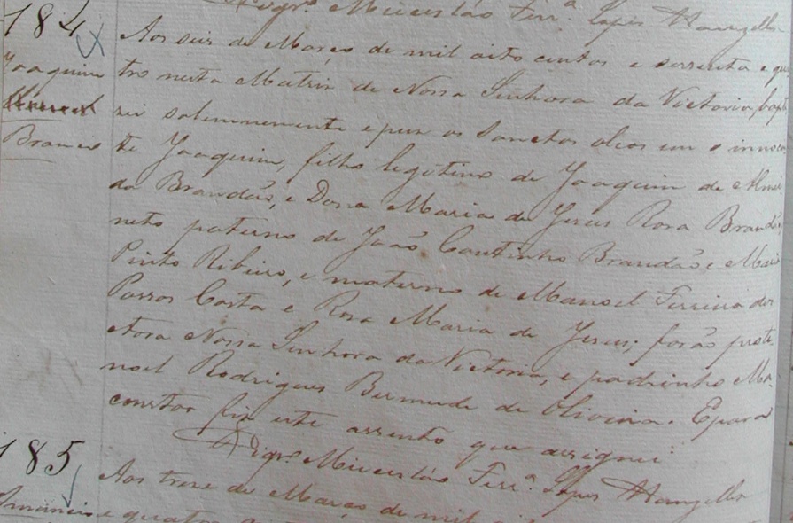 Joaquim, batizado no dia 06/03/1864, na Matriz de Vitoria-ES (branco)