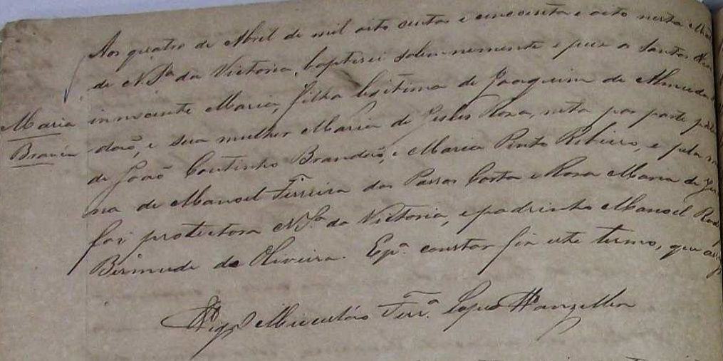 Maria, batizada no dia 04/04/1858, na Matriz de Vitoria-ES (branca)