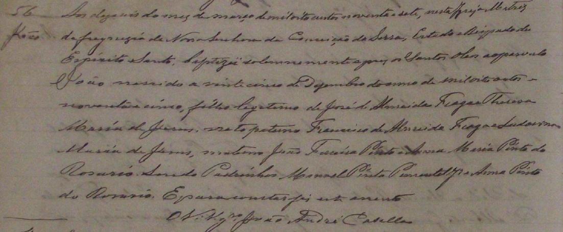 - João, nascido no dia 25/12/1895, batizado no dia 16/03/1897, na Igreja Matriz da Freguezia de Nossa Senhora da Conceição da Serra-ES