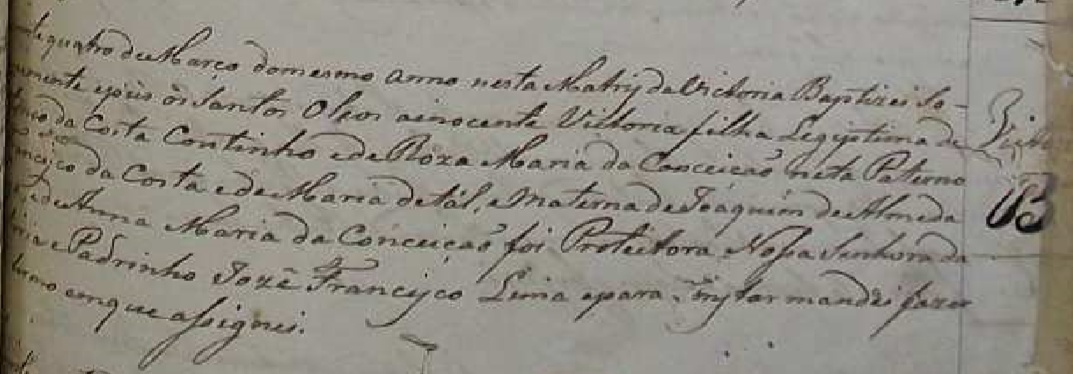 - Victoria, batizada no dia 04/03/1845, na Matriz de Vitoria-ES