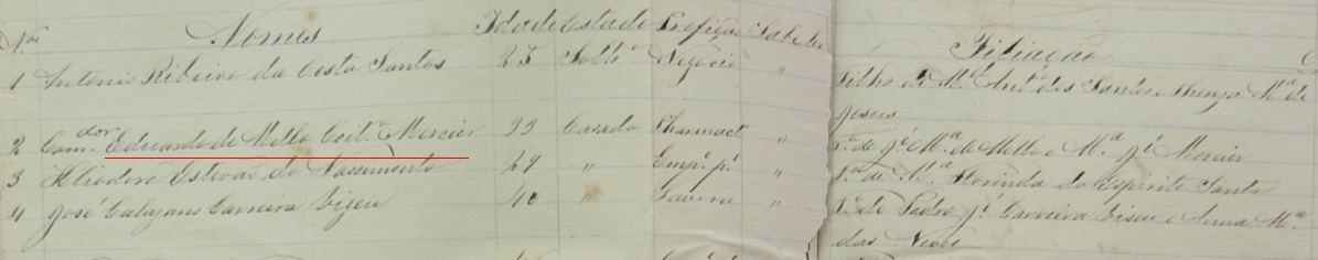 Comendador Eduardo de Mello Coutinho Mercier, em 1879 estava com 33 anos, casado, filho de Jose Maria de Mello e Maria Jose Mercier
