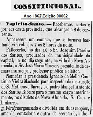 (Eduardo de Mello Coutinho Mercier, padrinho em 20/01/1882, em Nova Almeida-ES)