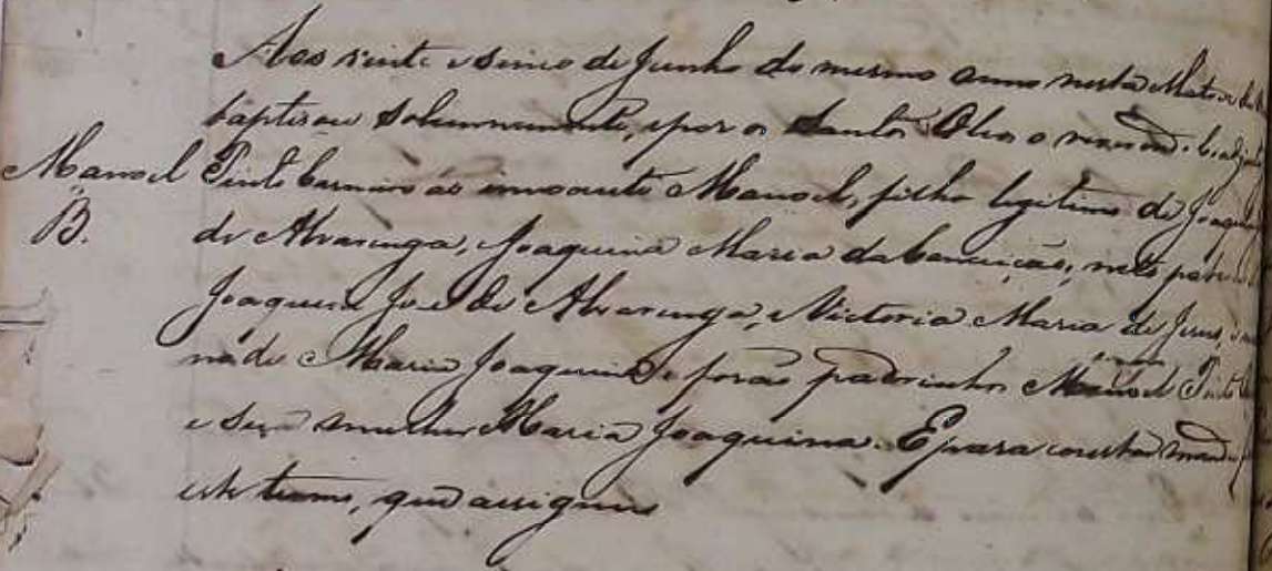 - Manoel, batizado no dia 25/06/1847, na Matriz de Vitoria-ES