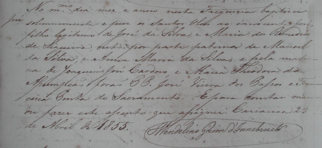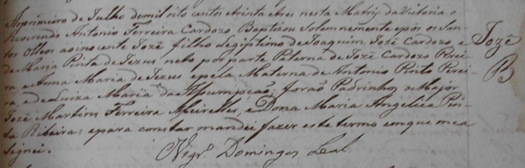 - Jose, batizado no dia 01/07/1833, na Matriz de Vitoria-ES