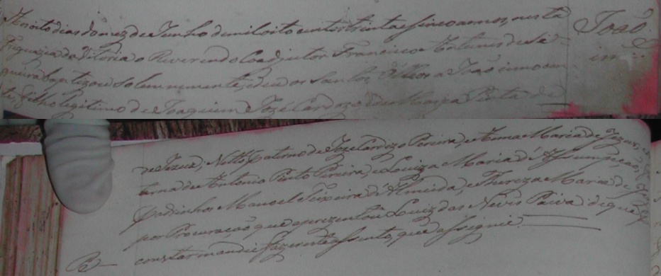 - João, batizado no dia 18/06/1835, na Matriz de Vitoria-ES