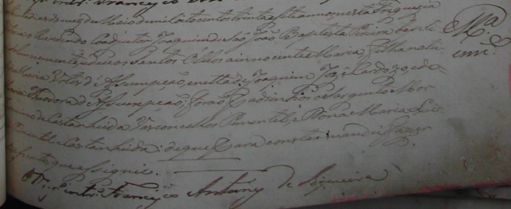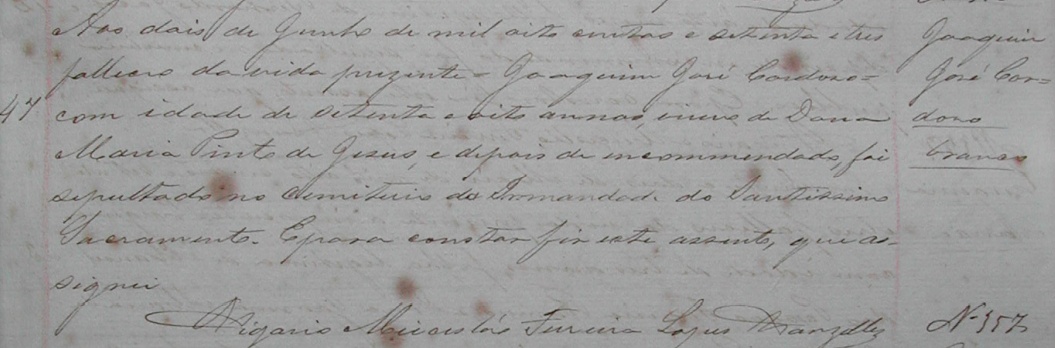 Testemunhas: Manoel Pinto Cardoso (irmão) e Manoel Teixeira de Almeida