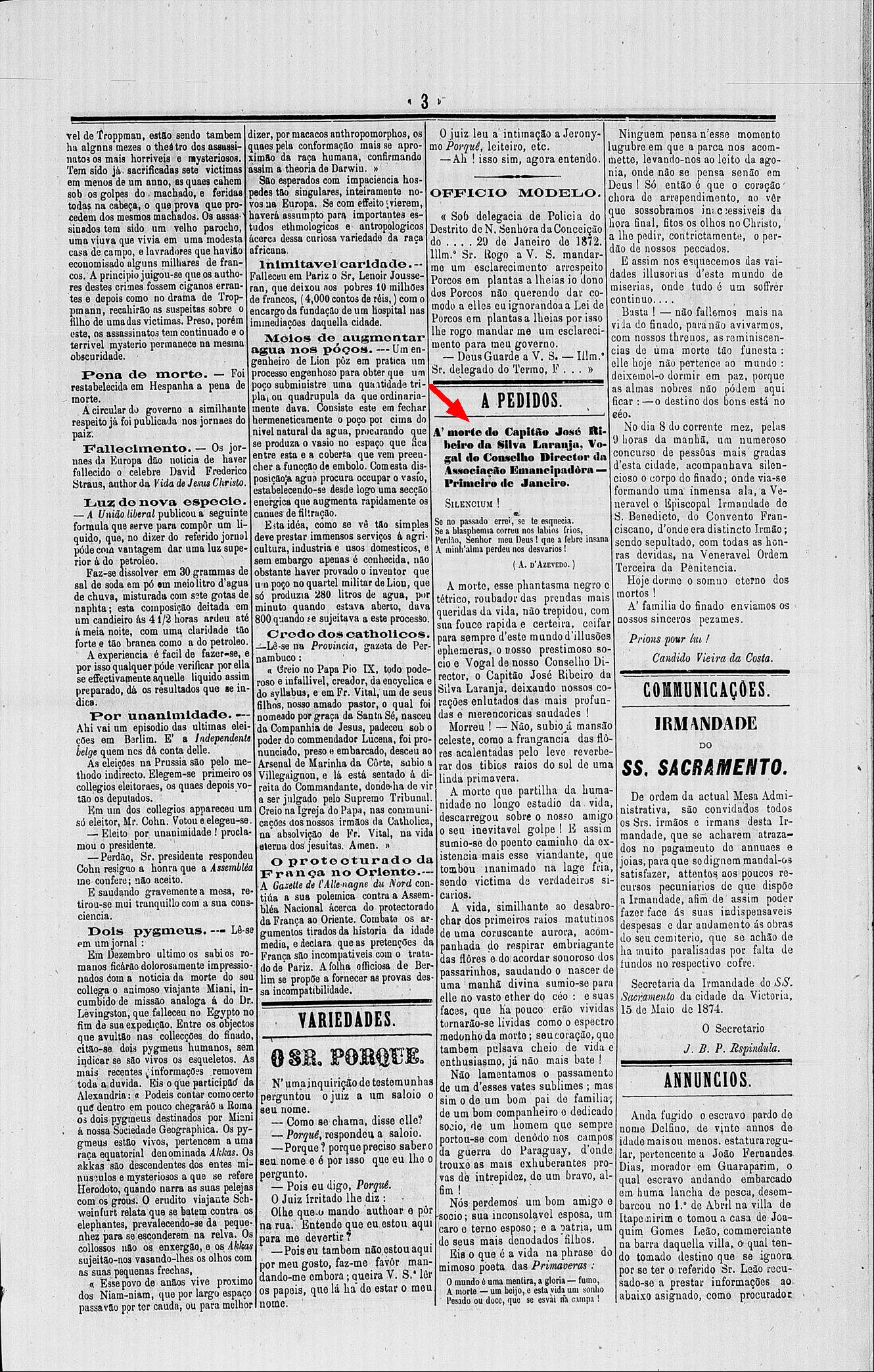 (Capitão honorário do exercito, falecido no mes de Maio de 1874, conforme jornal abaixo)
