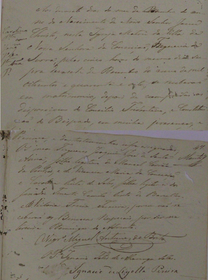 Casaram-se no dia 17/12/1848, na Igreja Matriz da Villa de Nossa Senhora da Conceição, Freguezia da Serra-ES, pelas 5 horas