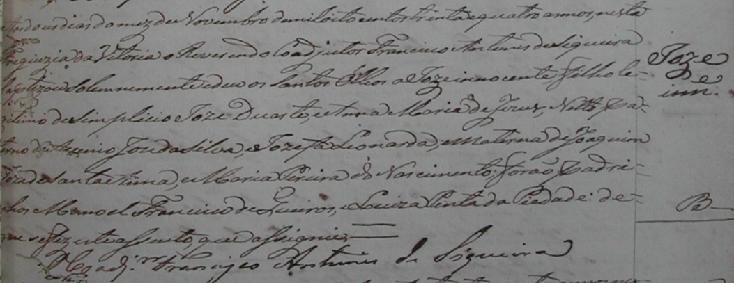 Anna Maria de Jesus c.c. Simplicio Jose Duarte (Simplicio Jose Duarte Serrão?), filho de Argenio Jose da Silva e Jozefa Leonarda (Jose Moreno Duarte/Jose Macena Duarte) e Josefa Maria de Jesus)