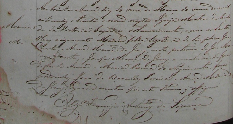 Padrinhos: João de Barcellos Pereira e Anna Maria de Jesus